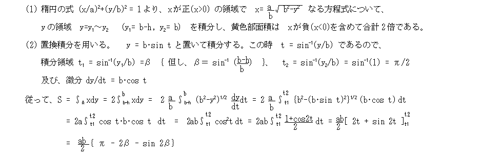 同様にして、 y = b・sin t による置換積分にて、